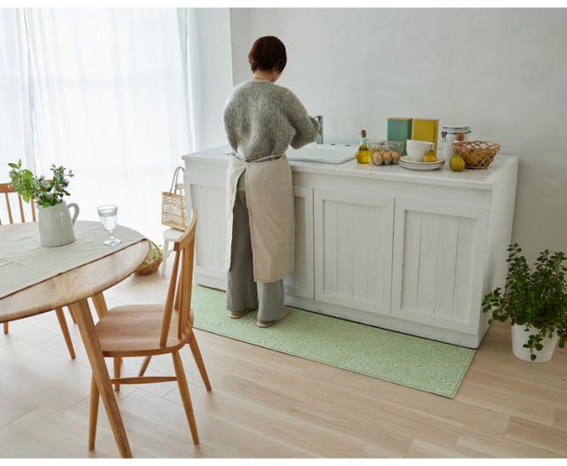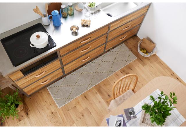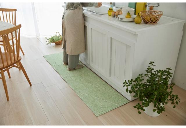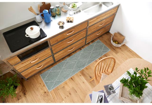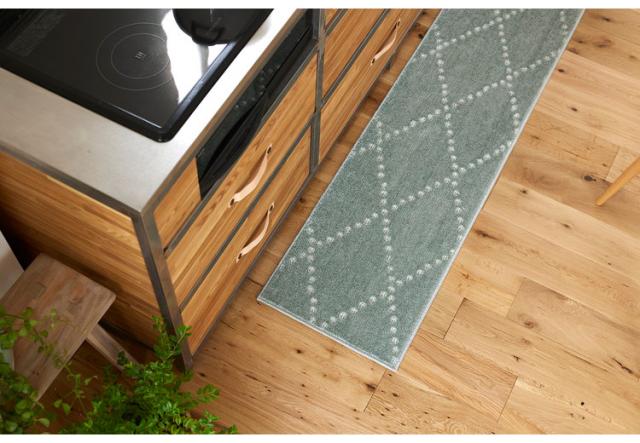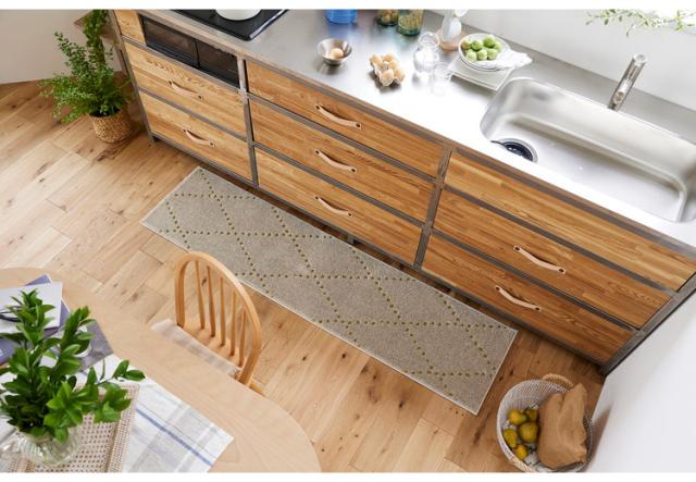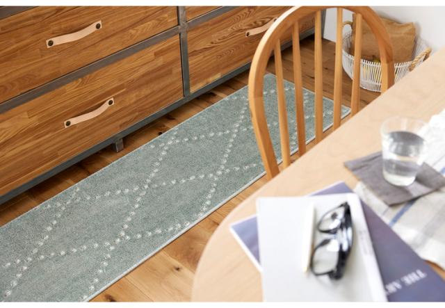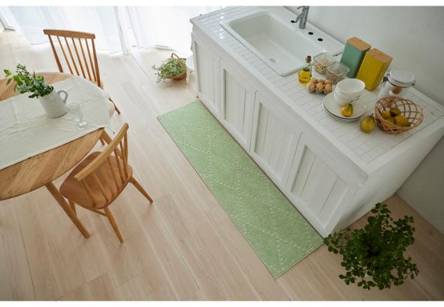日本製 ラグ 45×180cm キッチンマット 滑り止め ポント モロッカン模様 アクセント カラーライン タフトラグ ベージュ グリーン ブルーグレー 国産 スミノエ Suminoe(代引不可)【送料無料】