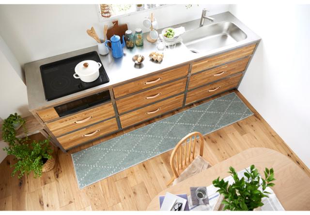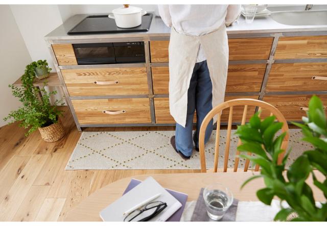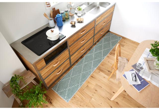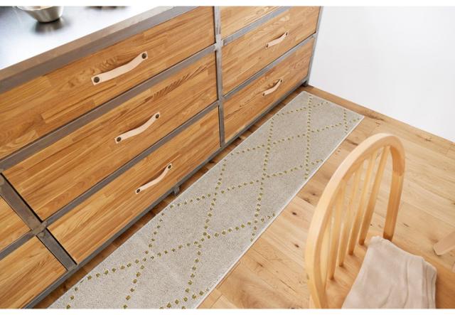 日本製 ラグ 45×240cm キッチンマット 滑り止め ポント モロッカン模様 アクセント カラーライン タフトラグ ベージュ グリーン ブルーグレー 国産 スミノエ Suminoe(代引不可)【送料無料】