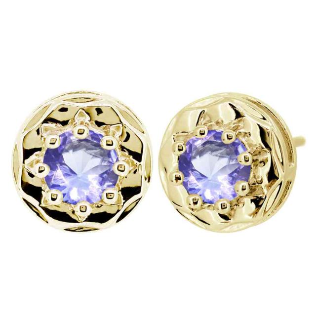 ピアス 18k 18金 レディース 一粒ピアス ゴールド タンザナイト 12月誕生石 両耳 スタッド 大人
