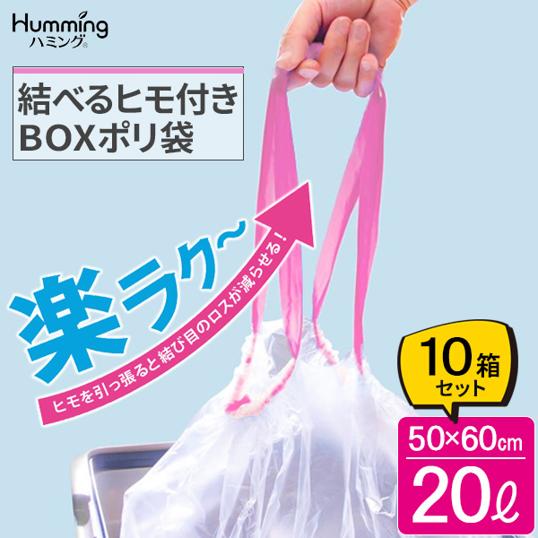 ヒモを引っ張るだけで口が結べる、20リットルのポリ袋【10箱セット】。