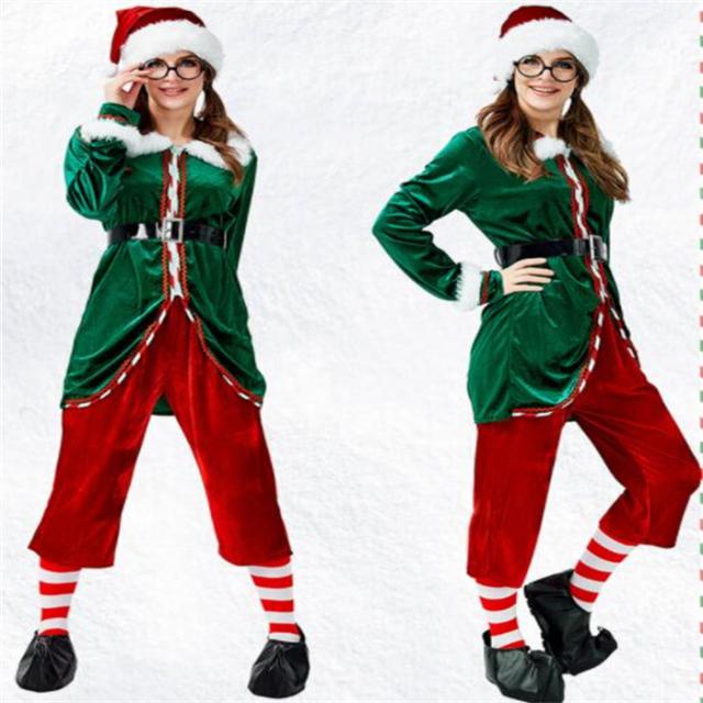 送料無料!クリスマス コスプレ コスチューム 衣装 長袖 女性 レディース クリスマスツリー 緑 スツリー仮装 6点セットコスチューム サンタクロース