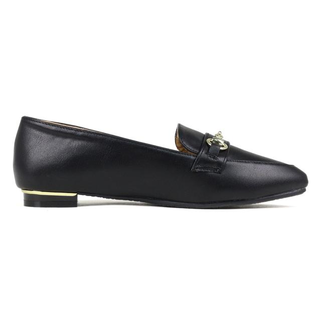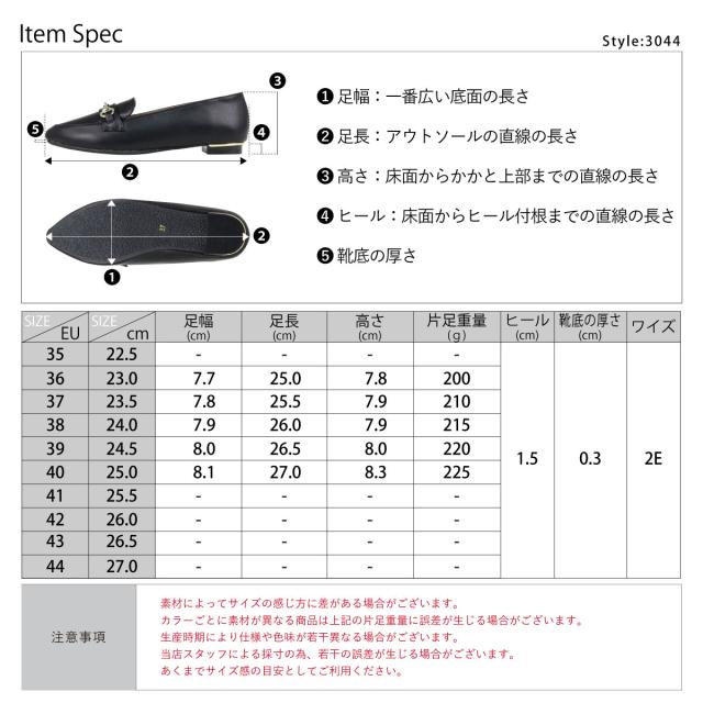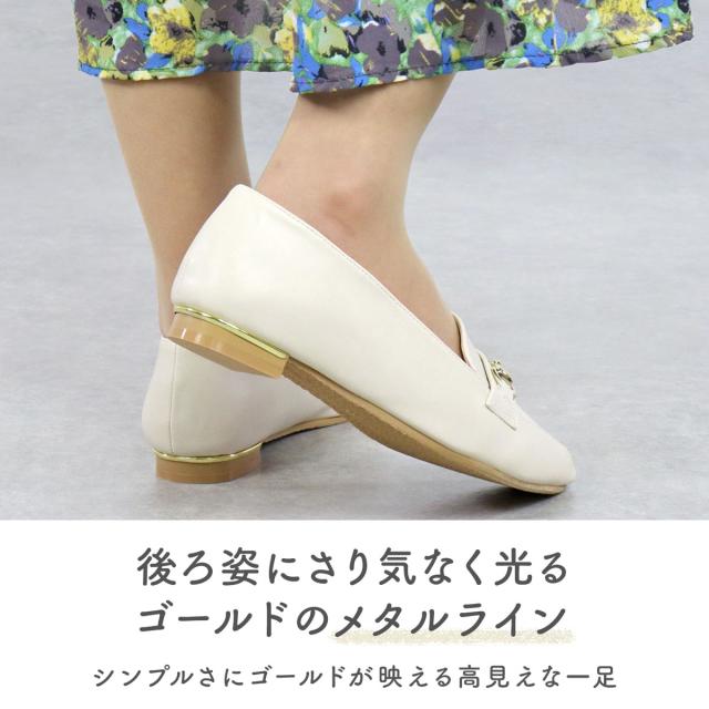 【返品交換不可】ローファー レディース フラット 歩きやすい ビットローファー メタルライン ポインテッドトゥ 1.5cmヒール No.3044 23.0cm〜25.0cm 黒 リバティードール