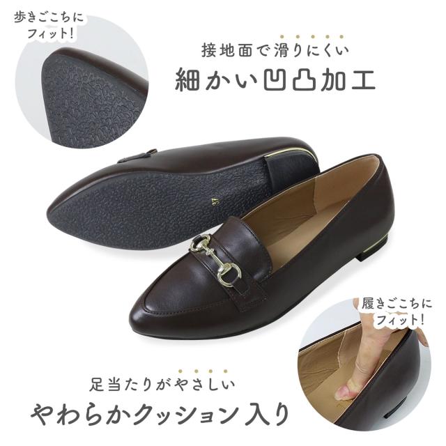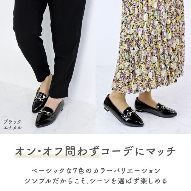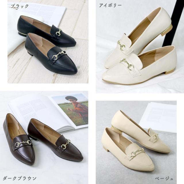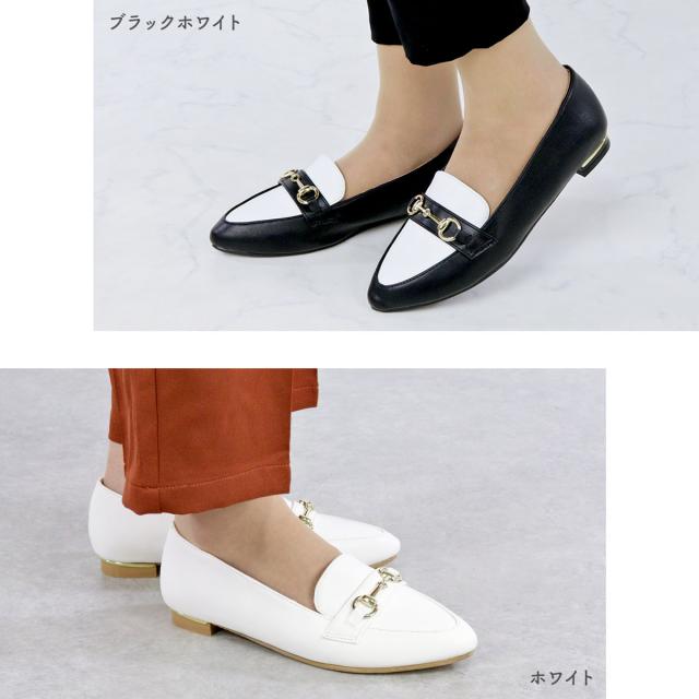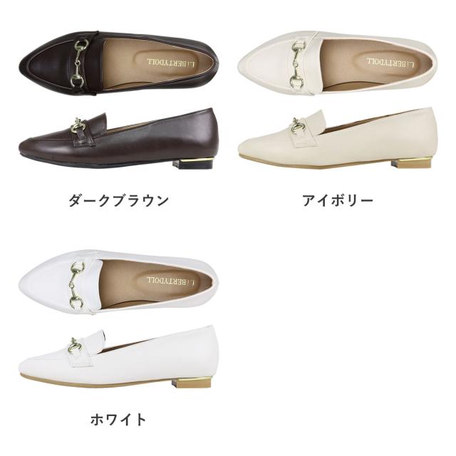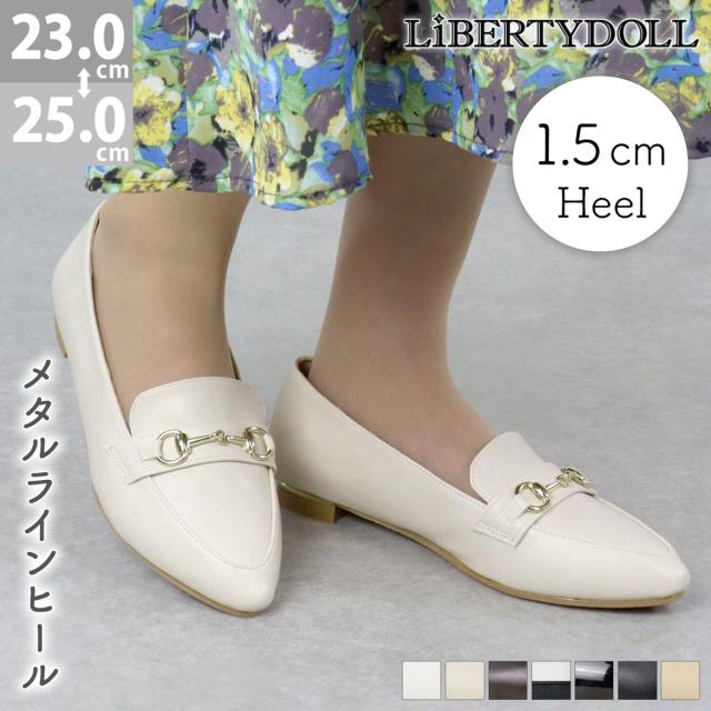 ローファー レディース ビット 1.5cmヒール フラット 疲れない ローヒール 合成皮革 レザー エナメル No.3044 23.0-25.0cm 歩きやすい 黒 ブラック 白 ベージュ ホワイト ぺたんこ クッションインソール ポインテッドトゥ ゴールドライン リバティードール 20 30 40 50 代