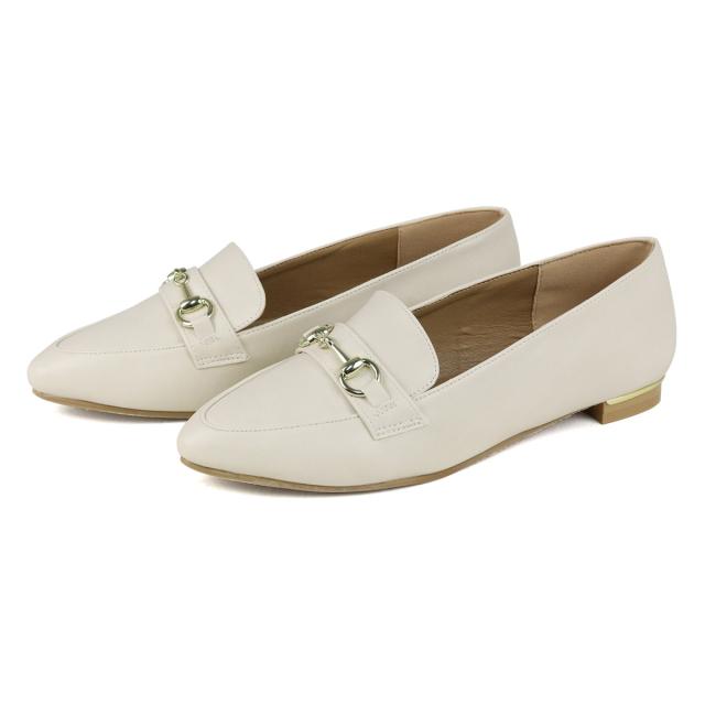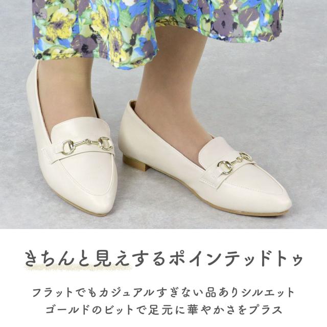 スッキリとしたポインテッドトゥのシルエットが大人の女性にぴったりなビットローファーです。