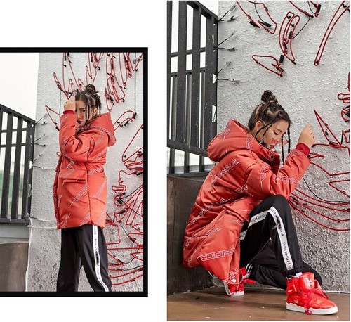 アウター ジャケット ブルゾン ダウンジャケット ダンスファッション ストリート系ファッション インパクトあり!ダンサー必見!英字プリントデザイン フード付きアウター HOPHOP
