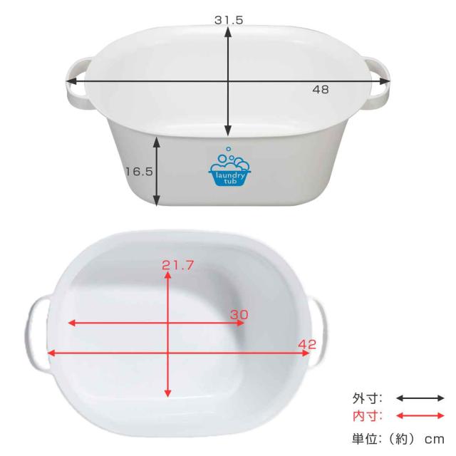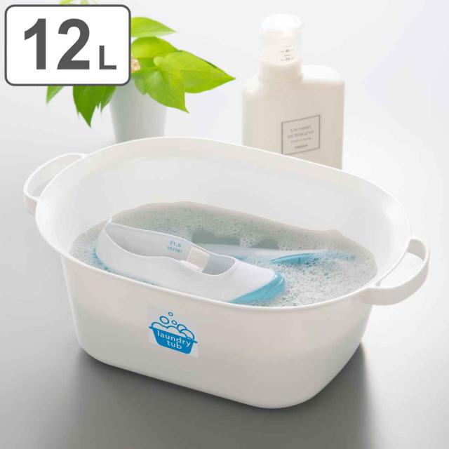 タライ 12型 ランドリータブ ( たらい 桶 12L 浸け置き洗い 予洗い 横長 取っ手付き 幅48 奥行31.5 ホワイト 日本製 洗い桶 靴洗い 洗濯 足湯 洗濯用品 収納 ランドリー用品 ランドリー タブ おしゃれ )