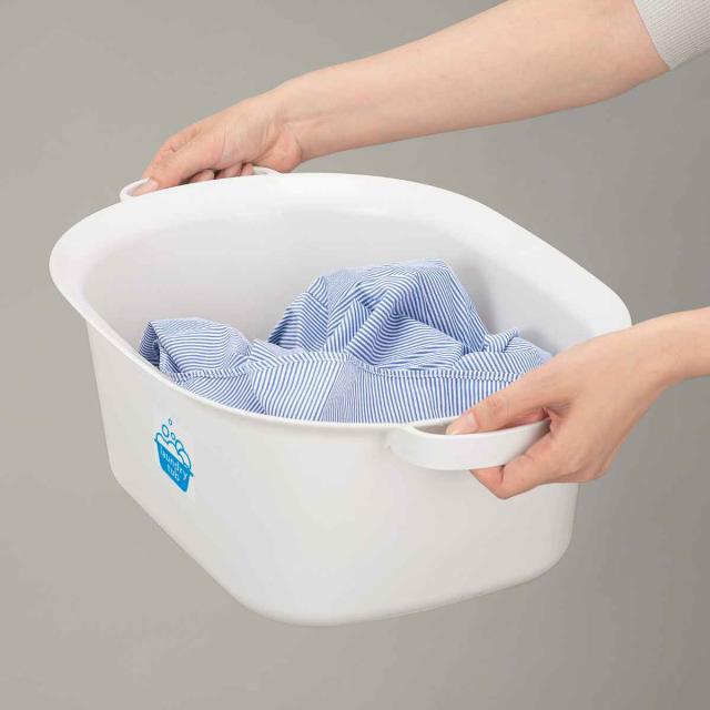 洗濯機に入れる前の襟袖の部分的な予洗いやシューズを洗う時、浸け置き洗いに便利なランドリータブです。容量12Lで大きめの容量です。