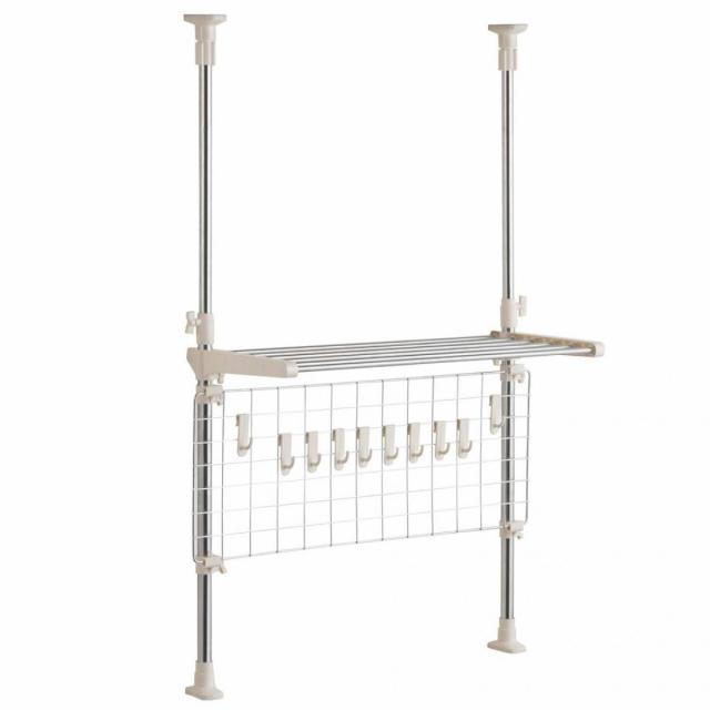 つっぱり キッチンラック スペース 有効活用 ネット付き ワームグレー ベストコ NY-1003 台所 吊り下げ フック 収納