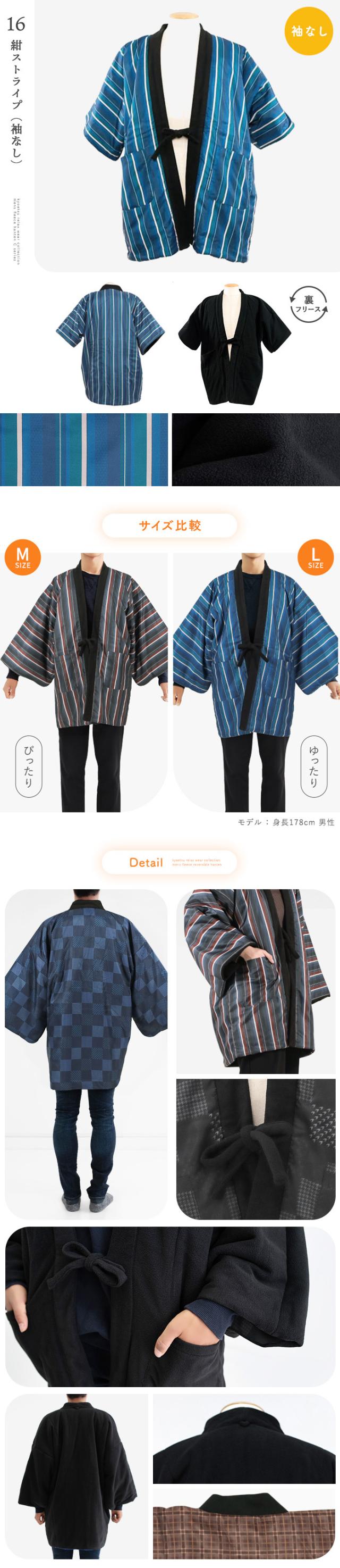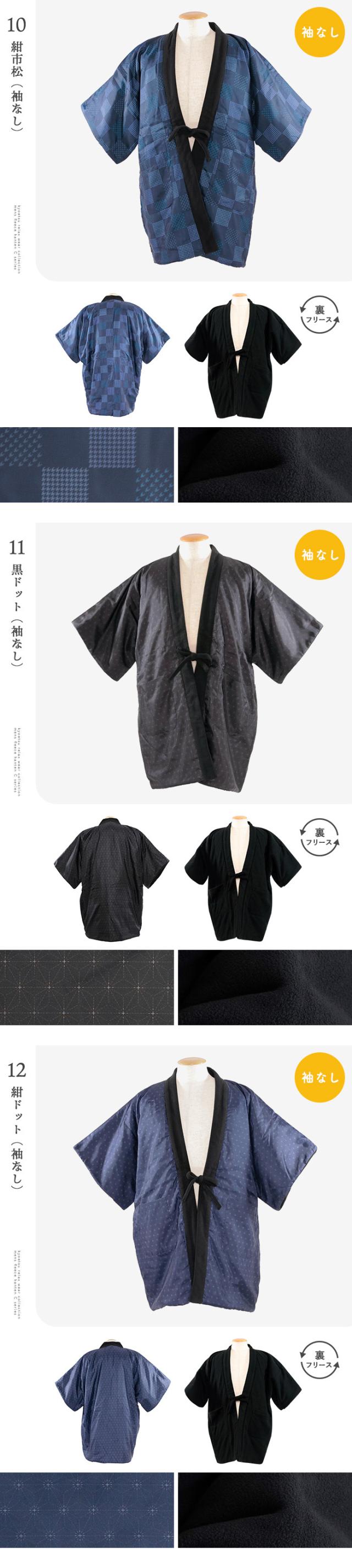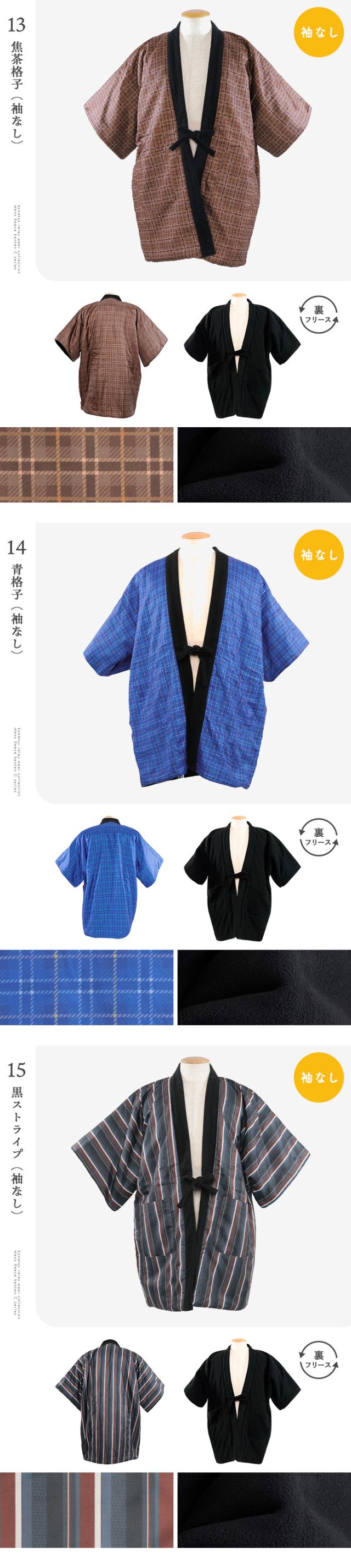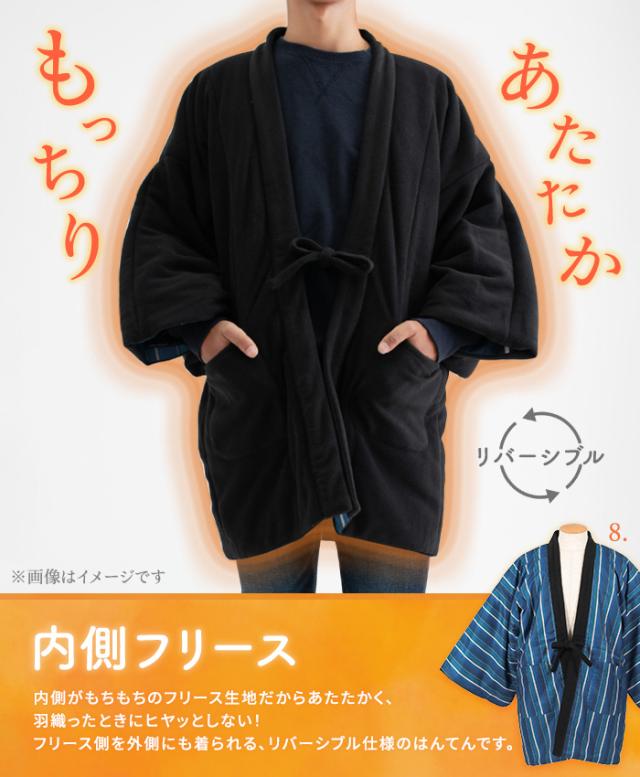 (選べる2タイプ 全16色 フリースはんてんC メンズ ) あったか半纏 リバーシブル はんてん 半天 半纏 フリース 男性 メンズ M/L 16種 半袖 ルームウェア 暖かい 綿入り ポンチョ 袢纏 ちゃんちゃんこ どてら丹前(rg)