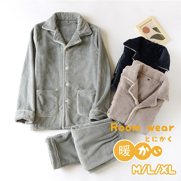 厚手ルームウェア もこもこ 無地 長袖 セットアップ レディース メンズ 冬 パジャマ 着る毛布 ナイトガウン 長ズボン パンツ付き 長袖