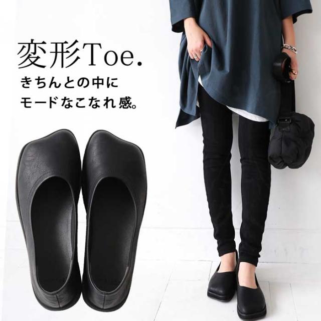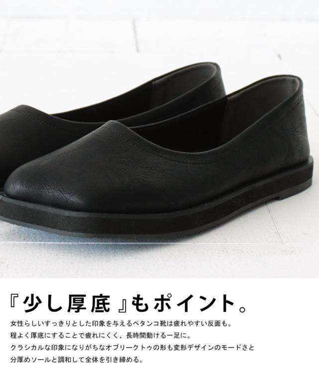 ap-00042 痛くない 歩きやすい ぺたんこ フラット フラットシューズ ローヒール ポインテッドトゥ 変形 個性派 シンプル きれいめ 合皮 フェイクレザー 本革風 マット シボ感