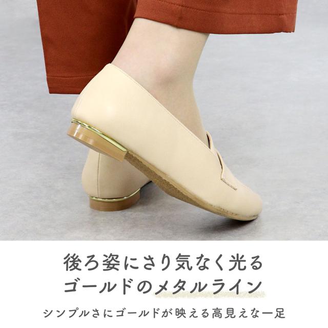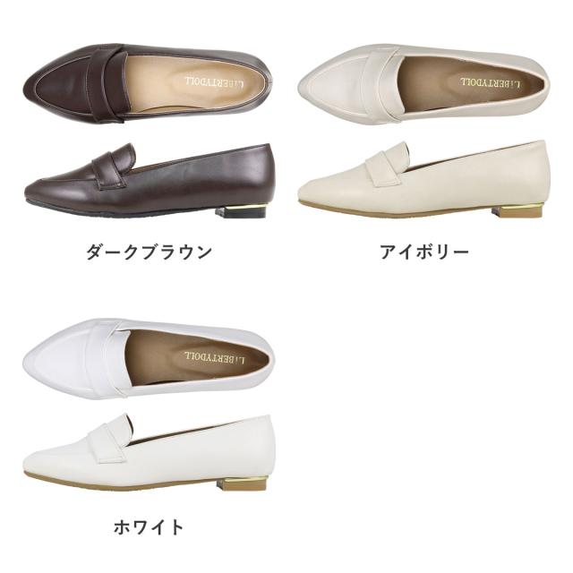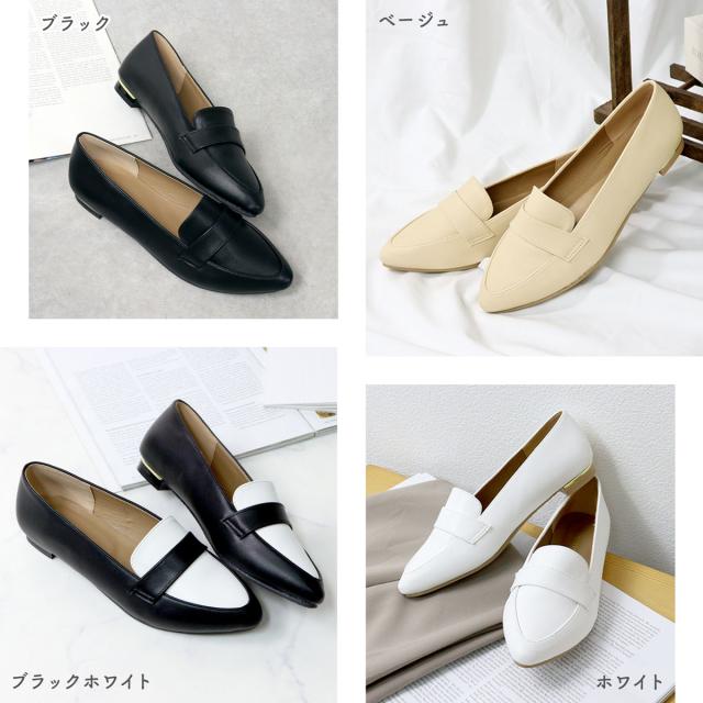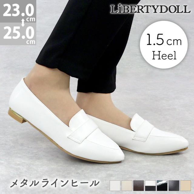 ローファー レディース フラット 歩きやすい コインローファー メタルライン ポインテッドトゥ 1.5cmヒール No.3013 23.0cm〜25.0cm 黒 リバティードール
