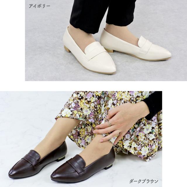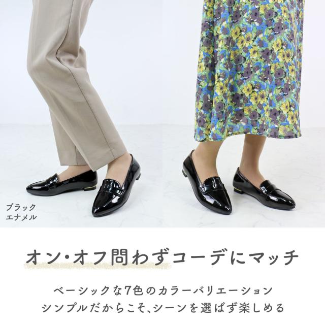 スッキリとしたポインテッドトゥのシルエットが大人の女性にぴったりなローファーです。