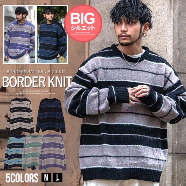 全体にデザインしたボーダー柄がインパクト抜群のビッグシルエットニット。