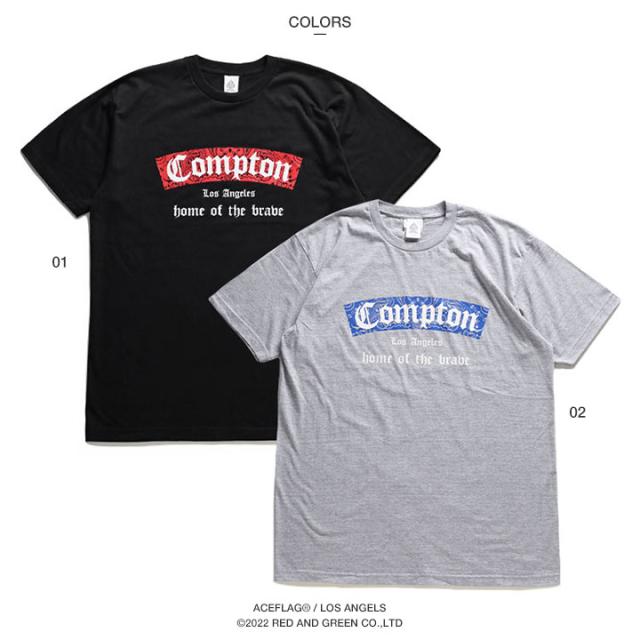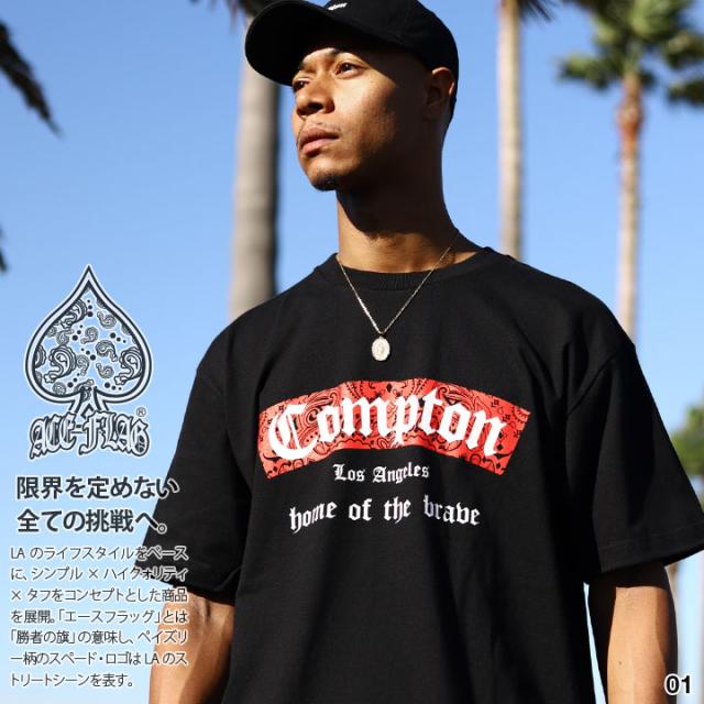 ACEFLAG Tシャツ 半袖 メンズ 黒/グレー 大きいサイズ エースフラッグ おしゃれ シンプル Compton コンプトン 西海岸 ペイズリー柄 b系 ヒップホップ ファッション ダンス ストリート系 ハイ ブランド 服 AF-TS-TS-056