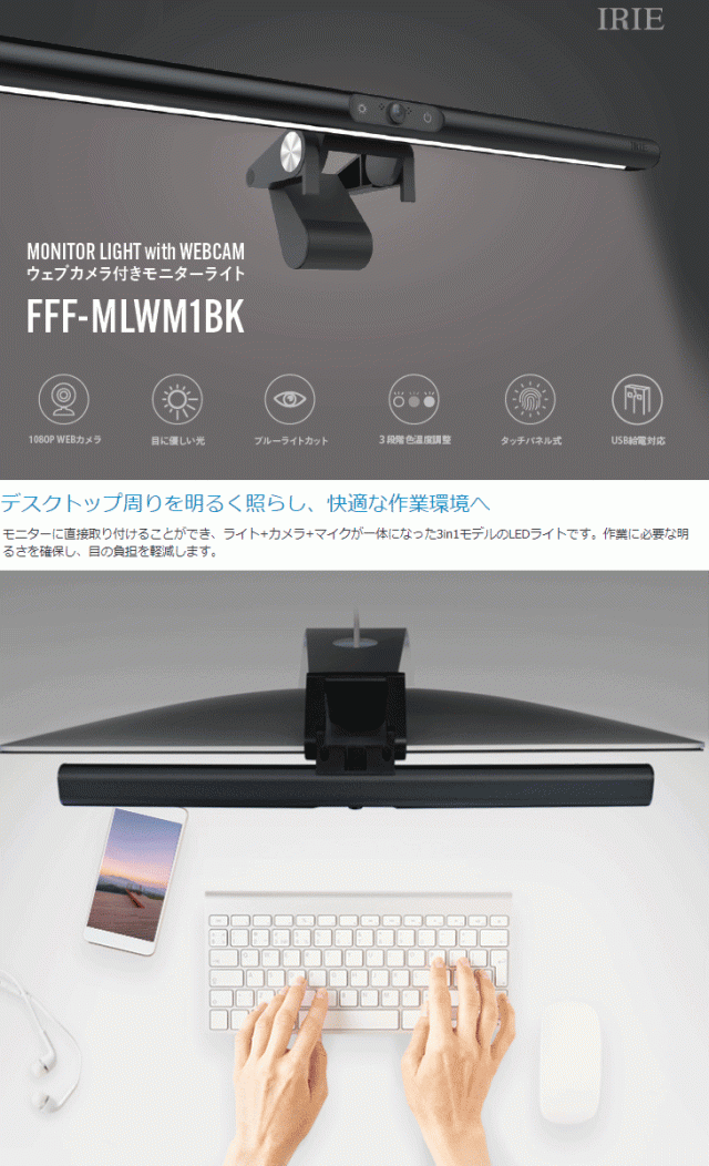ウェブカメラ付きモニターライト FFF-MLWM1BK