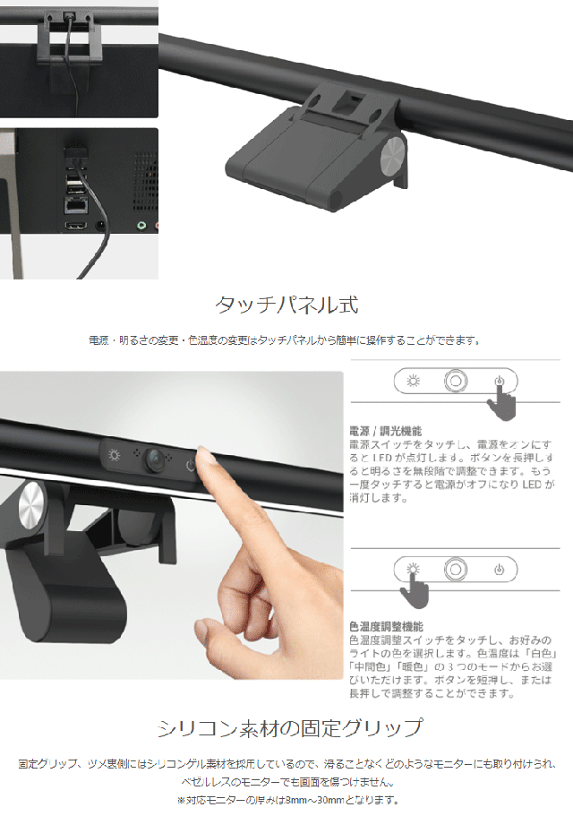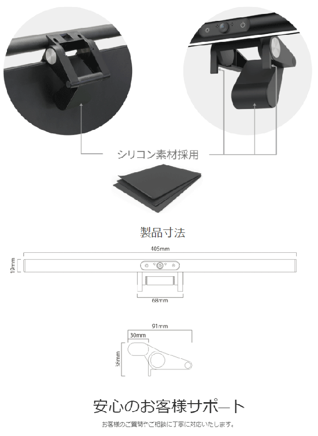 | 本体サイズ | 約 幅405mm×奥行19mm×高さ30mm ※ケーブルを含まず ※固定グリップをたたんだ状態 |