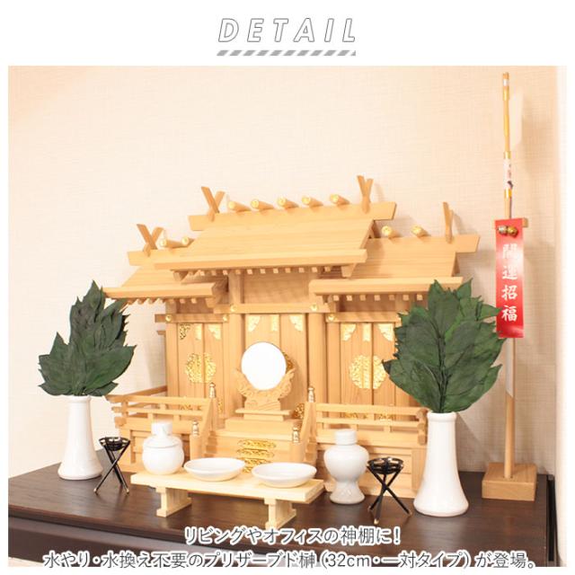 | 商品説明 | ・リビングやオフィスの神棚に!水やり・水換え不要のプリザーブド榊(32cm・一対タイプ)が登場。 ・毎月1日と15日に交換する習わしのある生花榊。 ・本物の榊に特殊な加工を施すことで、本物の榊と遜色ない仕上がりに。 ・水やり・水換えが一切不要なので、生花の持ちがよくない夏場、旅行や出張など長期不在の際にも最適。 ・生花より長持ちで、長期間色鮮やかな風合いを楽しめるのが嬉しい!(※生花榊を加工しているため、葉に色ムラがあるように見えることがあります。) |
