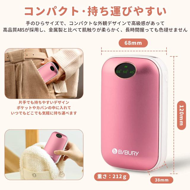 【四季おりおりの暖かいプレゼント】 サイズは112*68*38mm 、重さ212g、手のひらサイズで、コンパクトな外観デザインで高級感があって、高品質ABSが採用し、金属製と比べて肌触りが柔らかく、長時間握っても色褪せません。通勤、通学、旅行、家、オフィス、スポーツ、アウトドア、外出先、登山、キャンプなどに幅広く適用できますので、暖かさをいつでも楽しめます。また、クリスマス、誕生日、新年のお祝いのプレゼントとして、両親、恋人、友人など大切な人におすすめします。