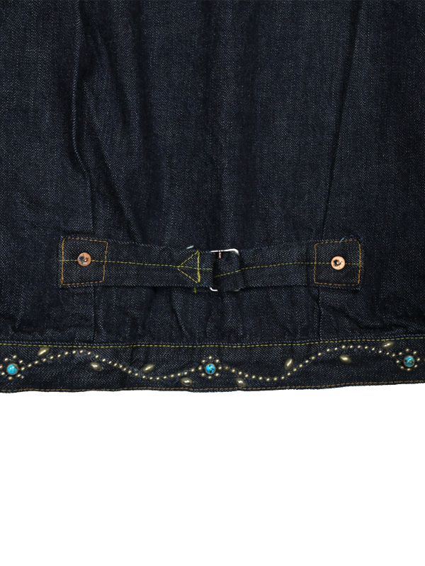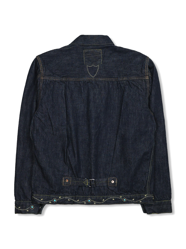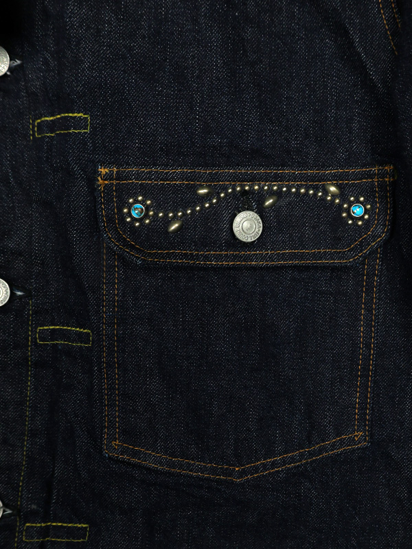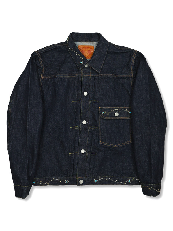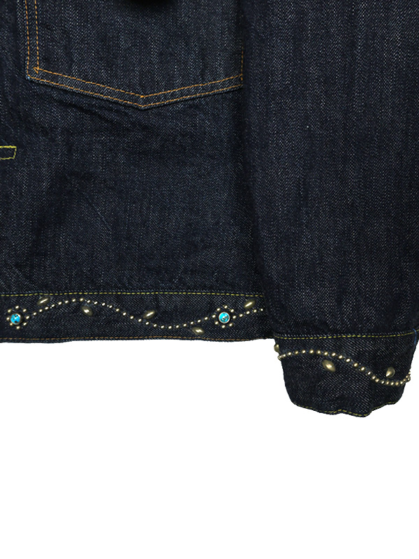 FULLCOUNT フルカウント デニムジャケット HTCコラボ モデル ●送料無料 リアルターコイズを使用したフラワーモチーフのスタッズを手打ちしたHTCとの必殺のコラボレーション。