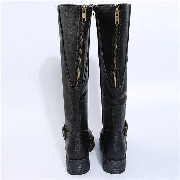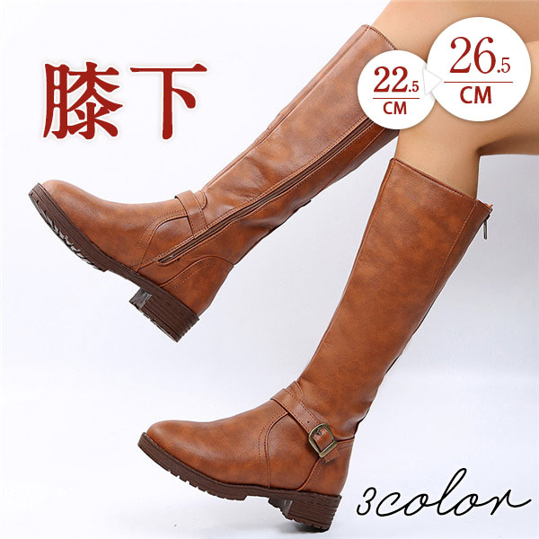 ロングブーツ レディース 厚底ブーツ 歩きやすい ファスナー 膝下 トレンド 靴 ワークブーツ ローヒール 無地 春 秋 冬 アウ