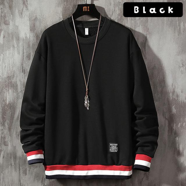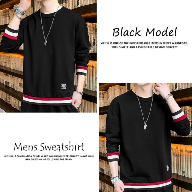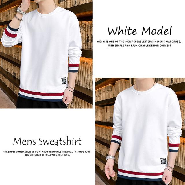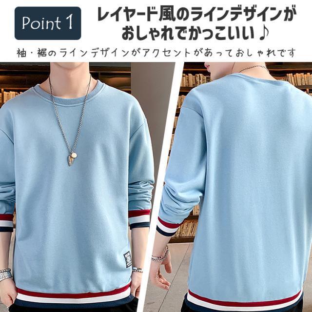 【袖と裾のラインデザインがアクセントがあっておしゃれ♪メンズ用 レイヤード風 ライン入りトレーナー】
