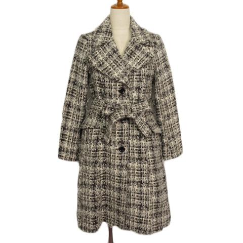 【中古】オットー OTTO チェスターコート ツイード ウール混 M 黒 ブラック レディース