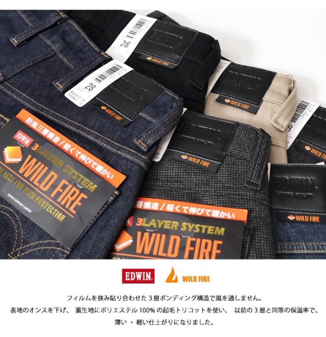 EDWIN エドウィン WILD FIRE 暖パン E03WF あったか3層構造 防風 レギュラーストレート 裏起毛 暖かいジーンズ 暖デニム メンズ 秋冬限定 ジーンズ 暖かいパンツ 送料無料