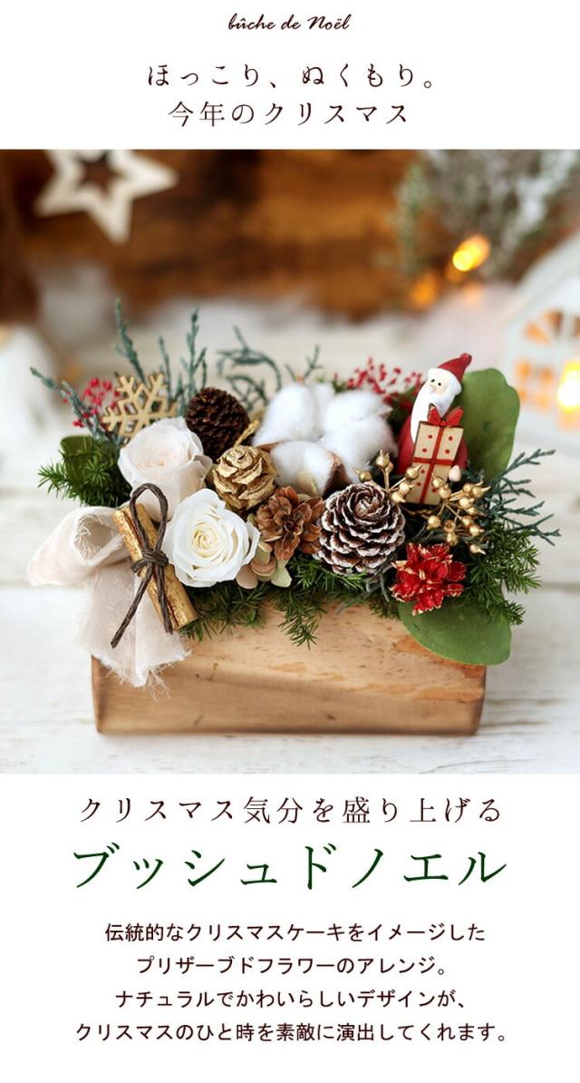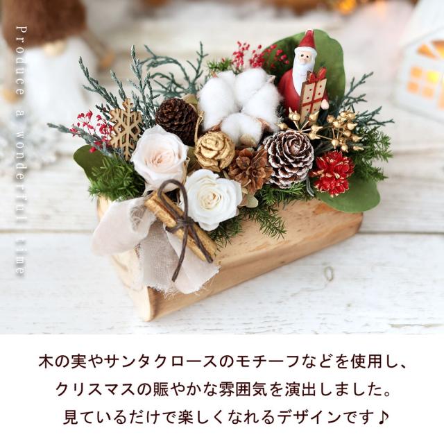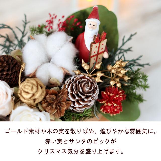 お花の ブッシュドノエル クリスマス プリザーブドフラワー 送料無料 ナチュラル サンタ インテリア 小物 クリアケース お誕生日 誕生日 クリスマスプレゼント 女性 友達 友人 新築祝い カフェ 開店祝い ディスプレイ おしゃれ 可愛い 花 ギフト 冬 退職祝い お歳暮 冬ギフト