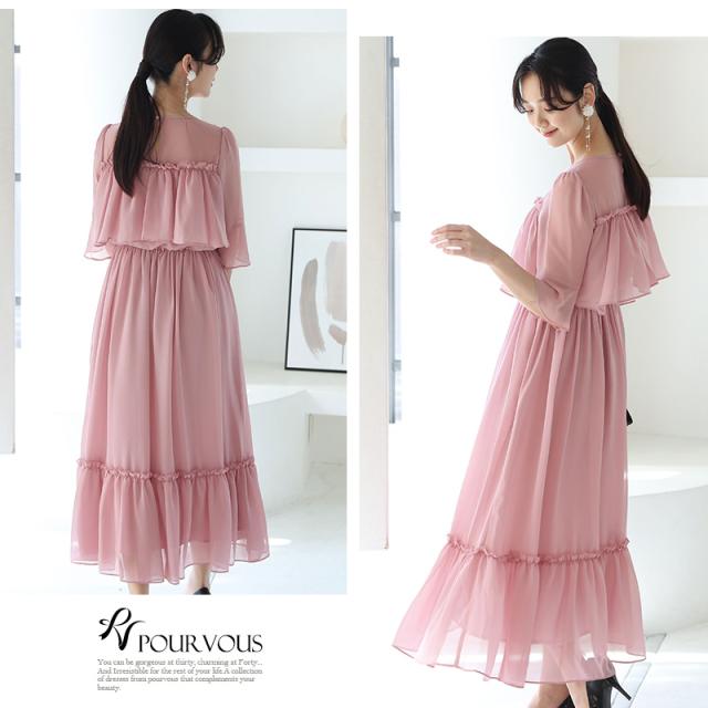 ■デコルテのフリルデザインが大人可愛い