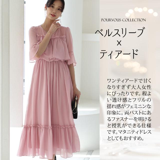 ベルスリーブワンティアードワンピース【415222022】20代・30代・40代・54代長袖・膝丈・セットアップ・スカート・体型カバー・ジャケット・テーラード・スーツ・大きいサイズなど・即日発送・送料無料結婚式・婚活・披露宴・顔合わせ・二次会・同窓会・お呼ばれ・食事会・謝恩会・親族・七五三・お宮参り・冠婚葬祭・弔事・女子会・デート・入学式・卒業式・入園式・卒園式・ママ・マタニティー・セレモニー・セレブ・パーティー