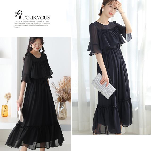 415222022 結婚式 ワンピース パーティードレス フォーマルドレス 大きいサイズ ドレス フォーマル お呼ばれ 体型カバー 小柄 韓国 小さいサイズ 顔合わせ 20代 30代 40代 50代 上品 春 夏 秋 冬 服装 服 二次会 50代 aライン 母親 袖あり 袖付き 袖 半袖 シフォン 黒 ピンク