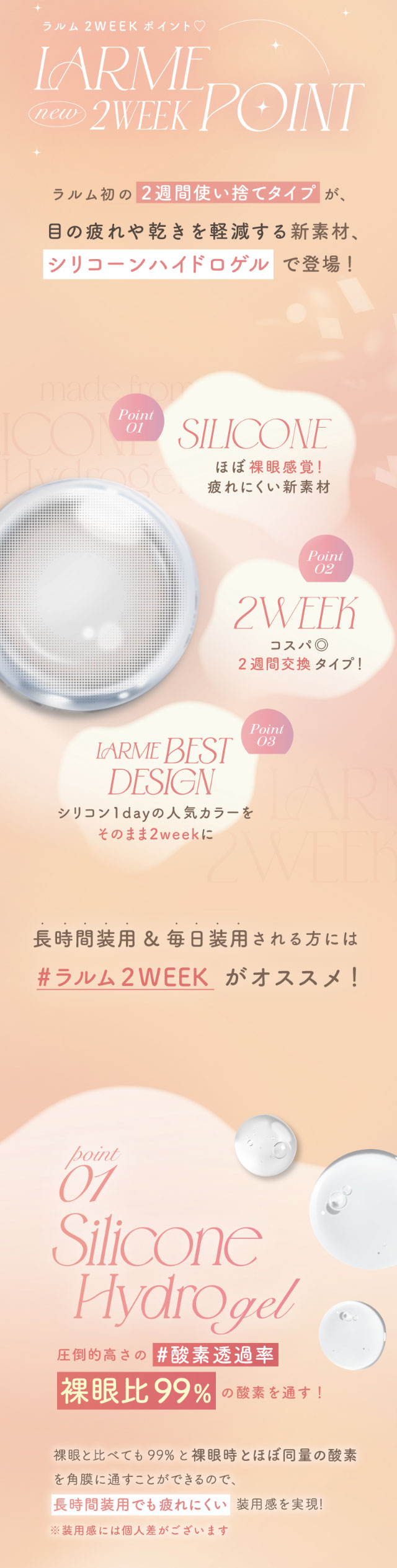 【クーポン利用で15%OFF!】LARME 2week Silicone ラルム 2ウィークシリコーン(1箱6枚入り)( 送料無料 カラコン カラーコンタクト 度あり 度なし シリコン シリコーン シリコーンハイドロゲル ツーウィーク モイスト UVカット 2週間 カラコン )