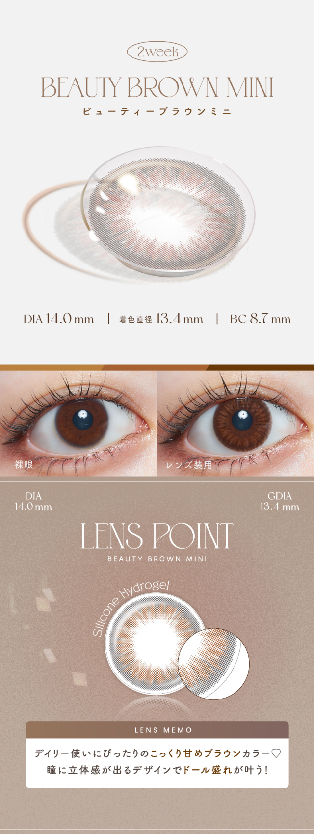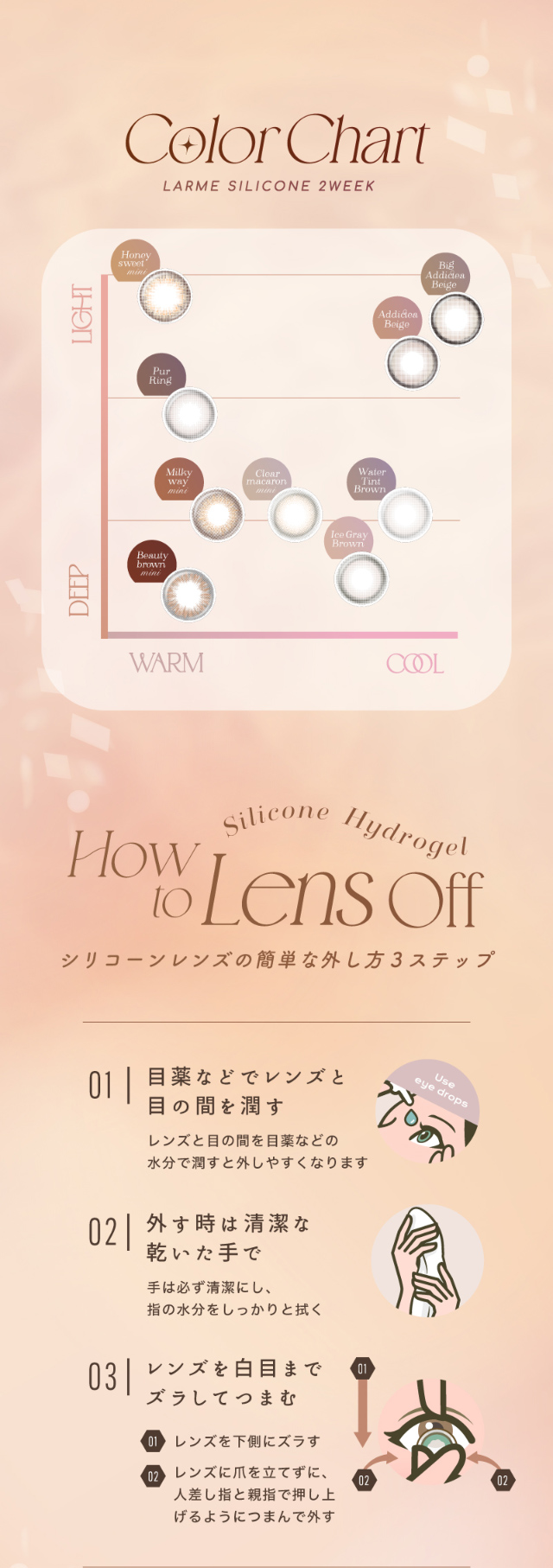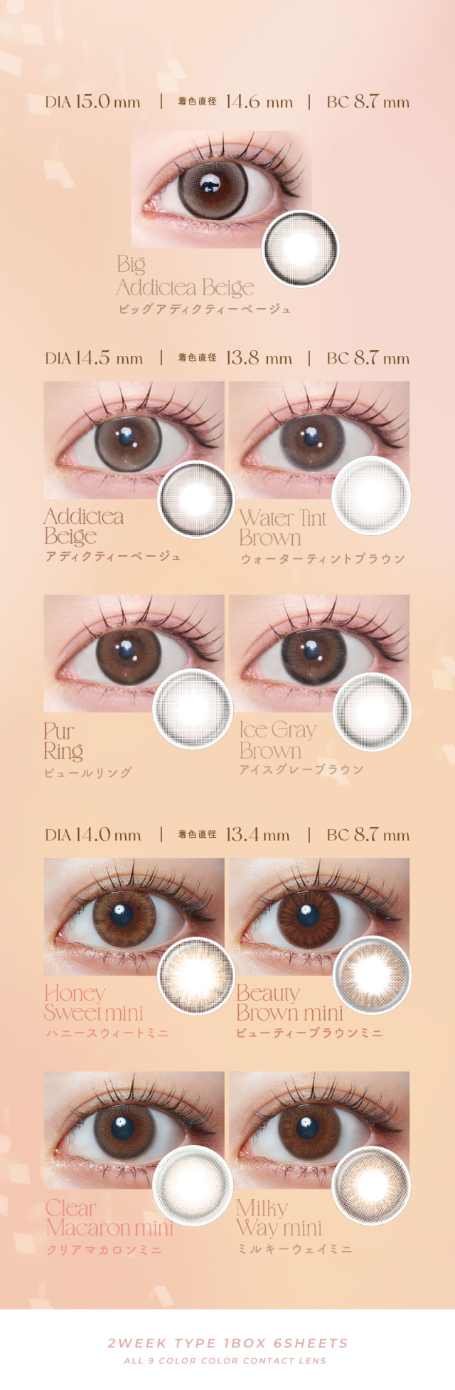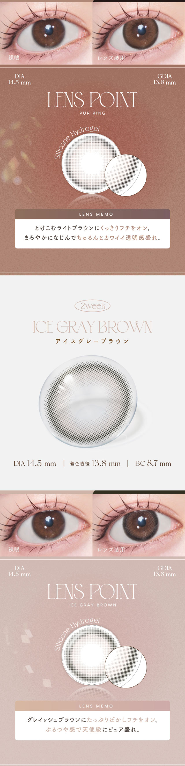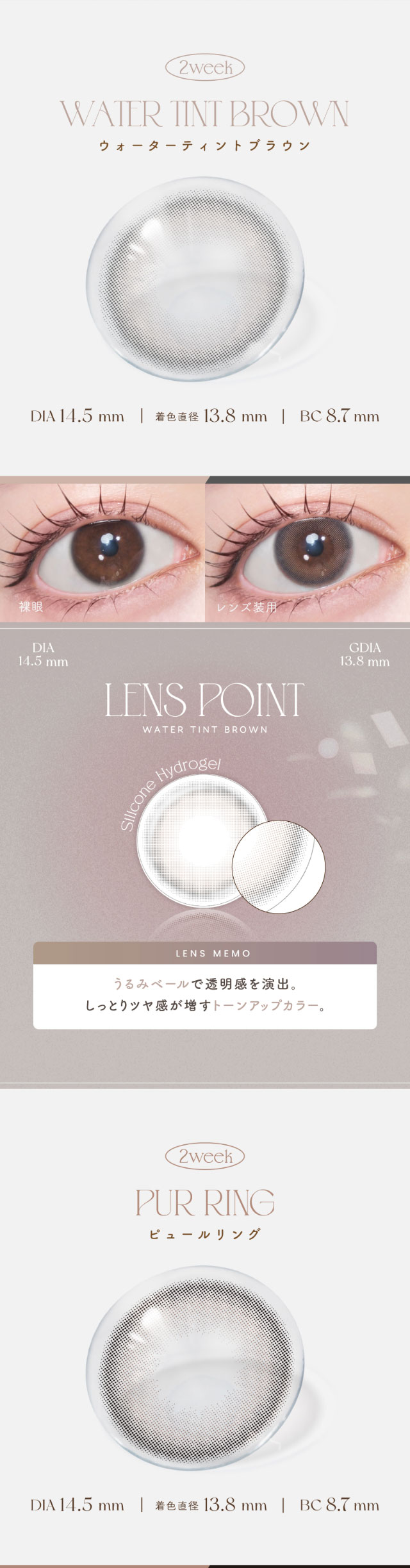 【14.5mm / 13.8mm / 8.7mm】アディクティーベージュ,ウォーターティントブラウン,ピュールリング,アイスグレーブラウン