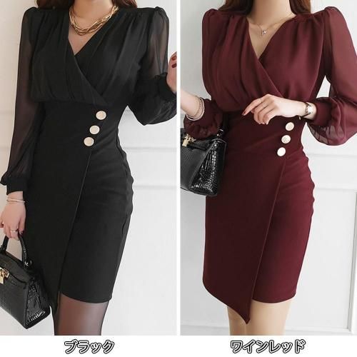 透け感とソフトな感触でレディライクに仕立てたカシュクールワンピース(キャバドレス・CABARETDRESS)。