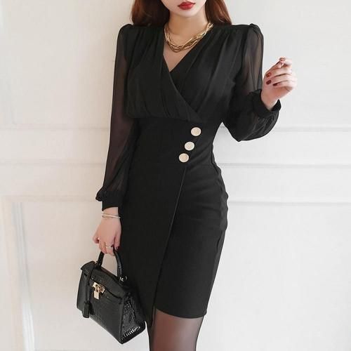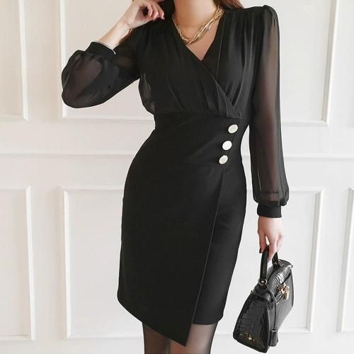 透け感とソフトな感触でレディライクに仕立てたカシュクールワンピース(キャバドレス・CABARETDRESS)