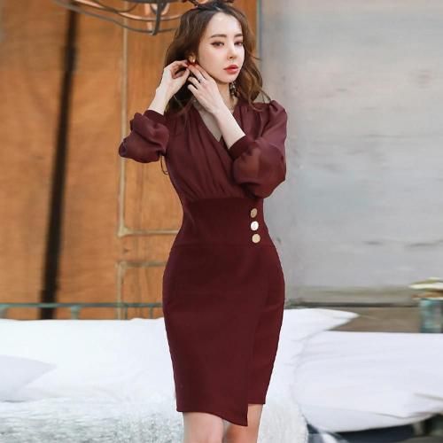 深めのVゾーンで大人な雰囲気のカシュクールワンピ。