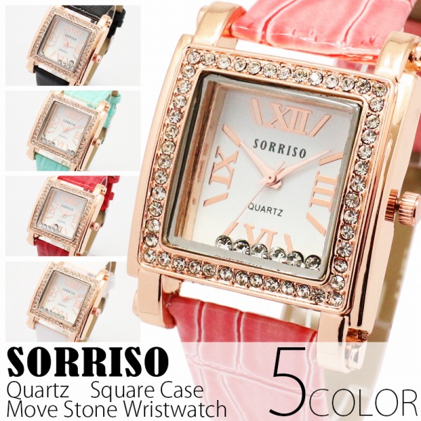正規品SORRISOソリッソ ベゼルにラインストーンを散りばめたスクエアケース腕時計 SRHI6 レディース腕時計 送料無料