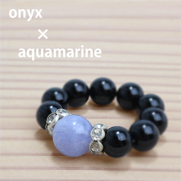 天然石 アクアマリン オニキス リング パワーストーン SS016 指輪 アクセサリー ジュエリー フリーサイズ 開運風水 送料無料