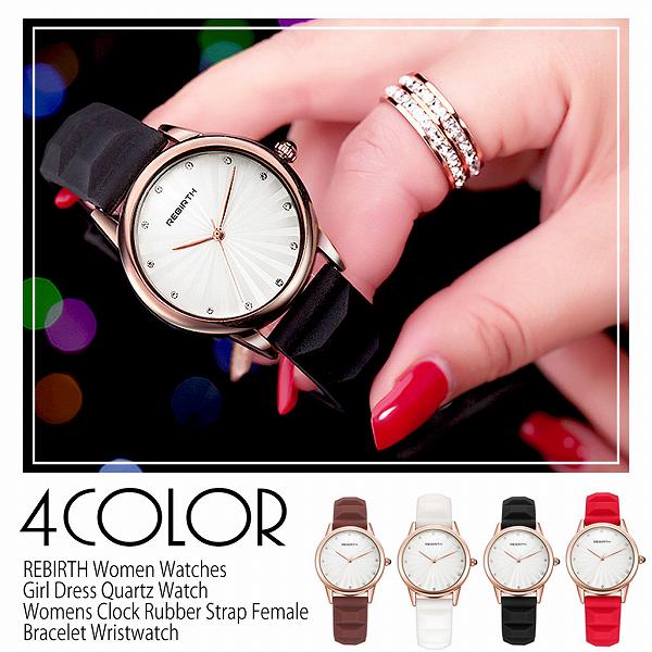 【REBIRTH リバース】セイコームーブ 日常生活防水 輝くデザイン文字盤 ラバー RB004 レディース腕時計 送料無料