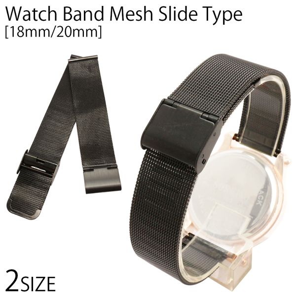 替えベルト 時計バンド 手元で輝く存在感 ステンメッシュベルト ブラック 黒 スライド式 スライド式ベルト 2サイズ [18mm] [20mm] BELT007 腕時計用ベルト 送料無料
