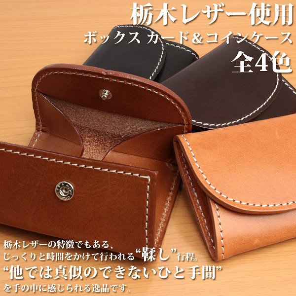 取寄品 日本製本革 栃木レザー[サマーオイル]コンパクトなボックス型 カード&コインケース 小銭入れ L-20352 送料無料