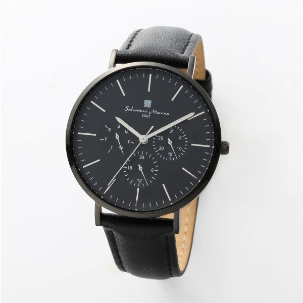 取寄品 正規品 Salvatore Marra 腕時計 サルバトーレマーラ SM22102-BKBK 日常生活防水 日付曜日表示 レザーベルト 防水 メンズ腕時計 送料無料