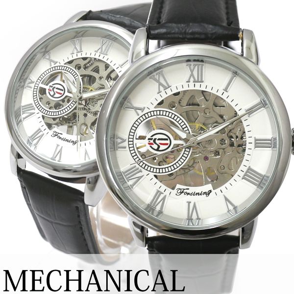 自動巻き腕時計 ATW040-SVWH シンプル機能のフルスケルトン腕時計 ホワイト ローマ数字文字盤 レザーベルト 手巻き時計 機械式腕時計 メンズ腕時計 送料無料