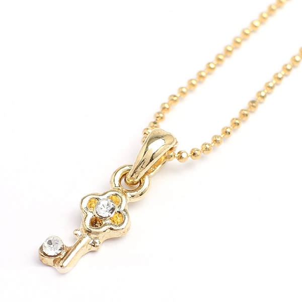 鍵モチーフのラインストーン付きゴールドネックレス キーデザイン レディースネックレス necklace SPST015送料無料