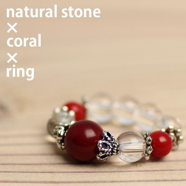 天然石 サンゴ 水晶 リング パワーストーン SS003 指輪 アクセサリー 開運風水 送料無料