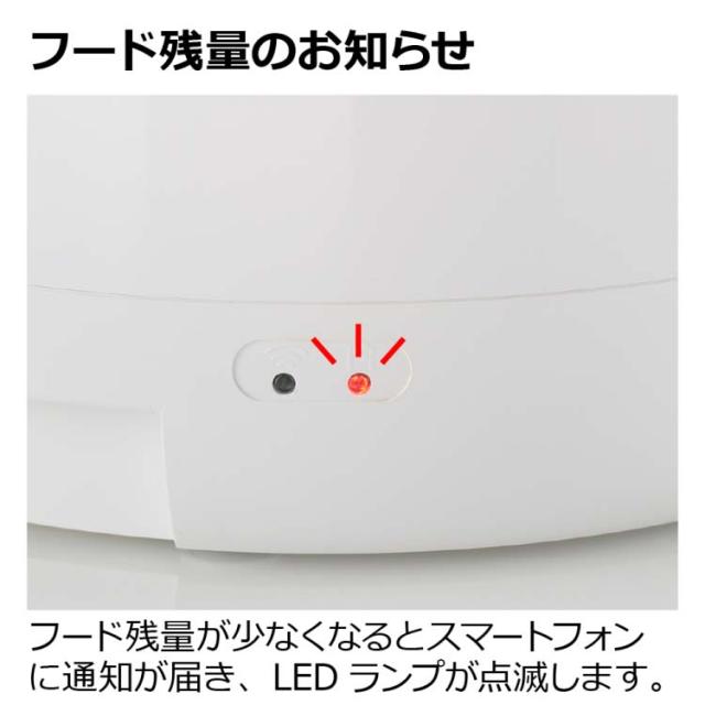 ●フード残量が少なくなるとスマートフォンに通知が届き、LEDランプが点滅します。