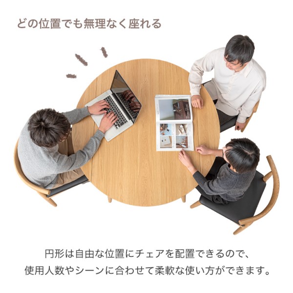 - 今まで長方形のテーブルだったので、椅子の後ろが少しつかえる感じでしたが、スペースに余裕ができました。三人なので方折れにして使ってます。いい買い物でした。