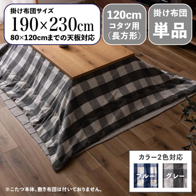 CKKF チェック柄 薄掛け こたつ布団 グレー/全2色 【120cmこたつ用 長方形 掛け布団単品】コンパクトスリム 幅190 奥行230cm (長方形) 北欧 コタツ布団