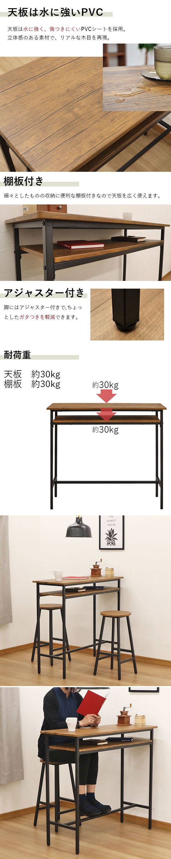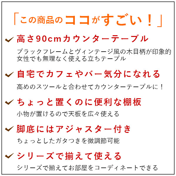 ヴィンテージ風がお洒落 カウンターテーブル(単品) の説明